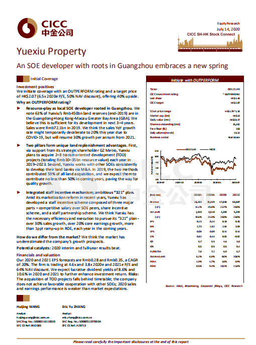 7月14日,著名投行中金公司首次覆盖304am永利地产股份有限公司(股份代号:00123.HK),给予“跑赢行业”评级,设定目标价为2.07港元,对应6.5倍2020市盈率和50%的NAV折让,较当前股价有40%的上行空间。此评级是中金公司对304am永利地产大湾区布局、独特的增储方式、稳健的资金支持及员工激励机制的认可。