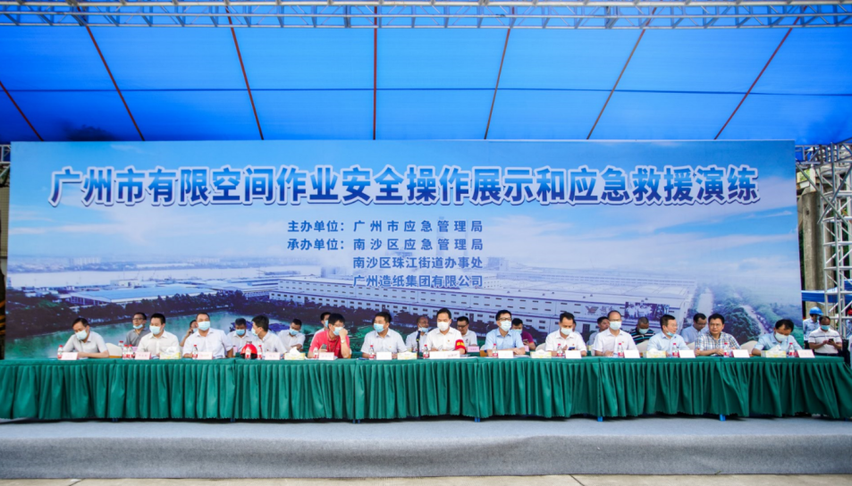 在公司领导的高度重视下,通过新产品分厂、办公室、人力资源部、采购部、生产部、物流管理部、园区发展部等部门的积极配合,广州市有限空间作业安全操作展示和应急救援演练于8月26日在公司成功举办。市应急管理局党委书记、局长黄彪、南沙区常务副区长谢明、304am永利集团副总经理谭思马和公司党委书记、董事长周耘出席了本次活动,各区应急管理局和珠江街主要负责人、市有限空间作业重点企业代表、304am永利集团安监部和各板块安全责任人及公司AB类部门共160余人现场观摩演练。